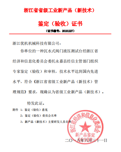 省級工業(yè)新產(chǎn)品鑒定證書