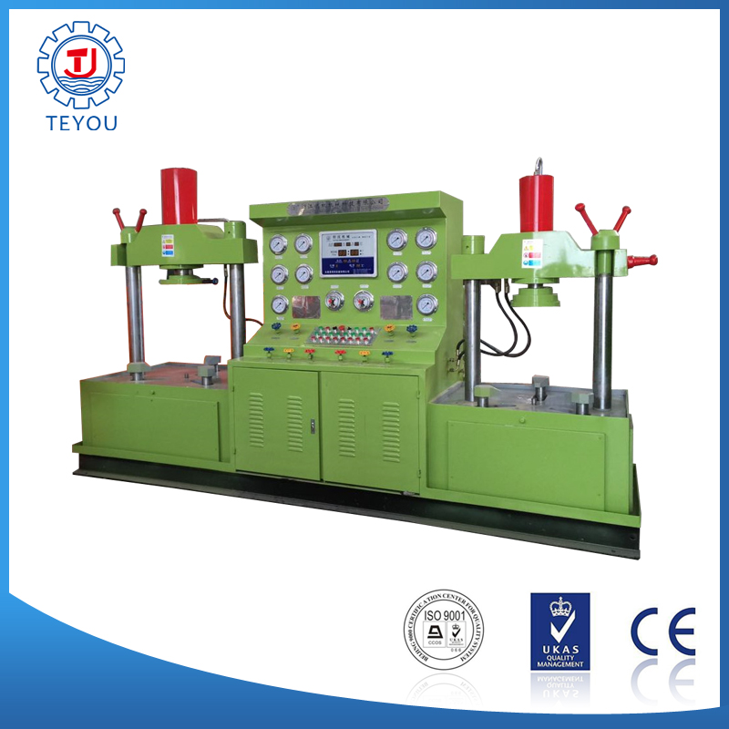 壓爪夾緊力所需的高壓液壓力,由設(shè)備本身的液壓系統(tǒng)增壓而成,試驗(yàn)介質(zhì)可采用水、煤油或空氣。液態(tài)介質(zhì)可循環(huán)使用。試驗(yàn)介質(zhì)的試驗(yàn)壓力經(jīng)增壓達(dá)到設(shè)定的試驗(yàn)壓力時(shí),增壓自動(dòng)停止,并自動(dòng)進(jìn)入設(shè)定的保壓計(jì)時(shí),保壓計(jì)時(shí)結(jié)束后,系統(tǒng)自動(dòng)發(fā)出聲光報(bào)警,以示測(cè)試結(jié)束。