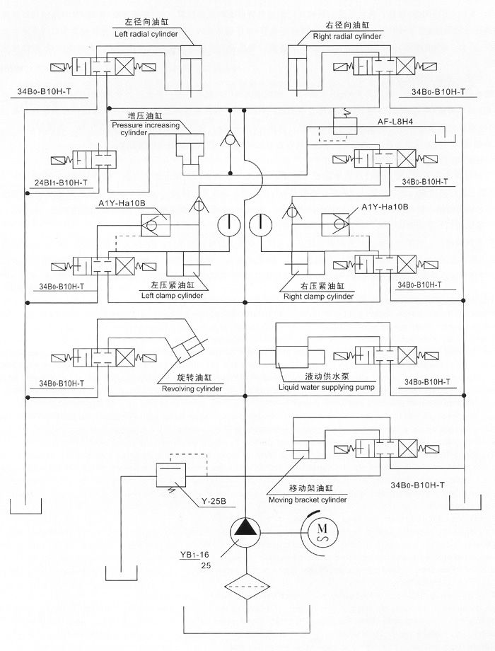 三、接通電源,按油泵啟動按鈕,檢查電機(jī)轉(zhuǎn)動方向,是否正確(順時針方向)進(jìn)行5—1 O分鐘空載運(yùn)轉(zhuǎn)后,調(diào)節(jié)油泵壓力在5 0MPa進(jìn)行試機(jī),各種動作,檢查各管路有無泄漏,發(fā)現(xiàn)不良現(xiàn)象,應(yīng)立即停機(jī)排除。